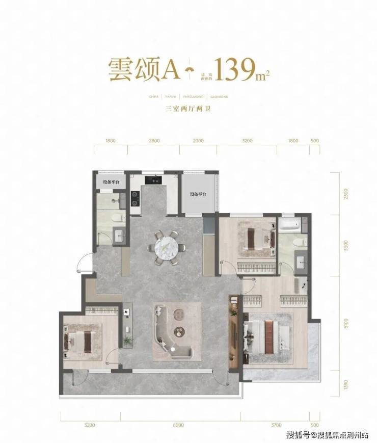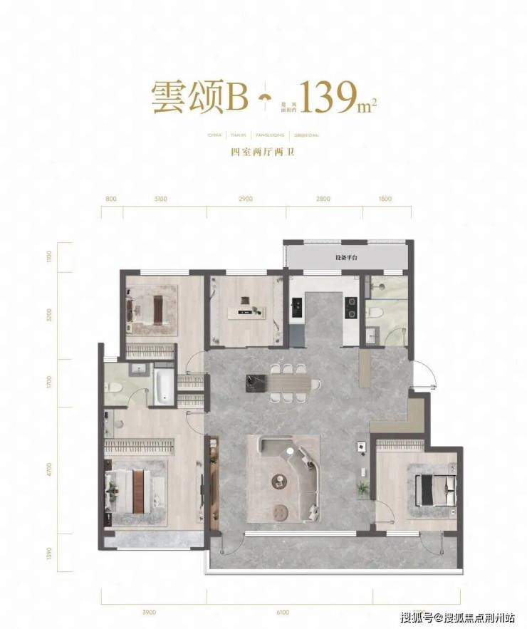 绿城·桃溪雲境建面约139㎡样板间效果图约139㎡迭代户型,双格局适配多元生活