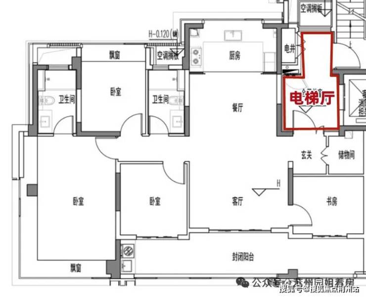电梯合用前室东西两侧各自独立,且空间很大,可作为两户专属拓展空间。
