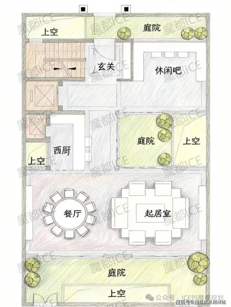 另一组户型(建面约420㎡左右),基本居中的多重院落显得项目秩序感、仪式感更强。