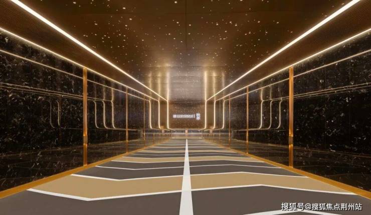 地下室公区同样出自大师设计——美国CDI创意国际设计集团,下车坡道星空顶加流线型灯带,玫瑰金属包边,两侧的墙面同样采用进口奢石,质感非凡。停车场地面采用水磨石及环氧地坪漆,不仅耐磨性更强,也更有质感。双大堂设计,仪式感必须给到位!