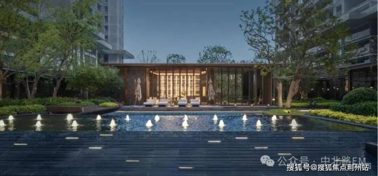 第三境·雅奢假日水庭:约240㎡戏水浅池铺设定制艺术图案,跳泉与乌桕树影相映成趣,金属质感廊柱与特色灯具序列排布,营造“一步一景,步移景异”的沉浸式度假氛围。