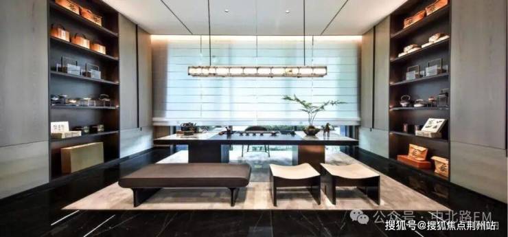 鎏·光会所:超2000㎡私属空间,前厅以天然的⽯材纹理奠定空间的⼤⽓与庄严感。精⼼挑选的壁灯,提取古典之精髓,巧妙地融⼊整体造型之中,彰显空间独特的韵味与格调。议事厅和图书馆一侧采用3M宽,4.6M高的超白钢化夹胶玻璃,通过无框不打胶的方式,打造360°无遮挡景观视野,建筑、景观、室内在空间中和谐共生。水吧区、书吧、私宴厅等功能区采用奢石与流光玻璃碰撞,勾勒出自然品奢之感。