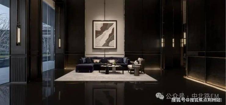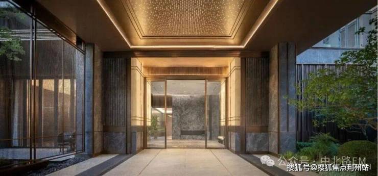 第一境·酒店式前序迎宾界面:近100米宽的黑金配色城市界面,搭配交互式景观迎宾区与酒店式落客区,郁郁葱葱的植被环绕形成天然屏障,既保障私密性,又赋予业主“穿过城市喧嚣,步入静谧私域”的仪式感。