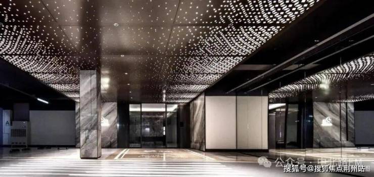 单元入户大堂:仿石砖嵌金属条地面搭配发光云石灯柱,顶部“星光顶”采用参数化设计模拟宇宙星云,穿孔板孔洞间距精确至50-60mm,确保光影效果与结构安全的完美平衡。