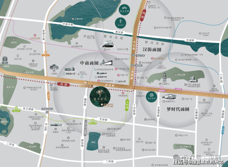 2. 配套成熟度:周边商业资源丰富,武商梦时代、中商广场等大型综合体均在步行范围内;医疗资源亦十分优质,同济医院、中南医院距离适中。
