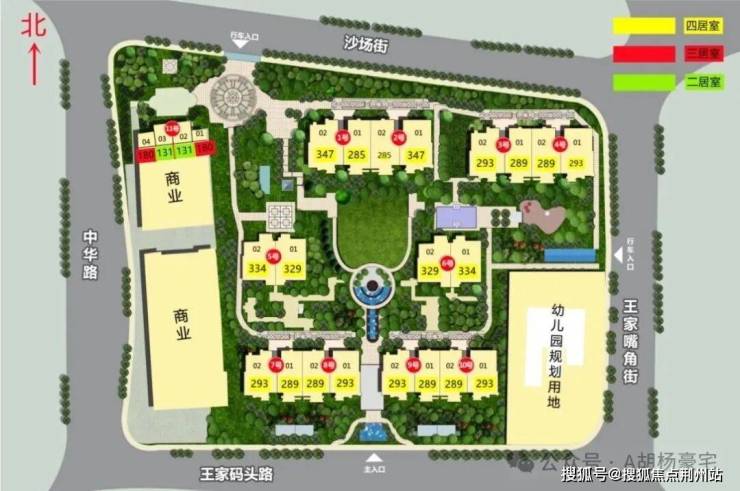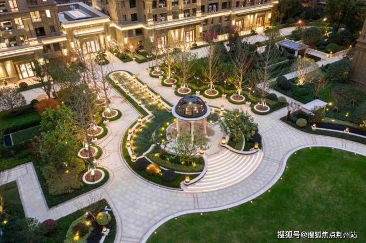 整体布局:采用“王”字形点状排布,以百米中央景观大道为轴,形成围合式花园,彰显皇家仪式感。