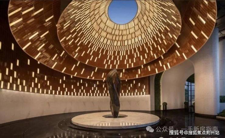最吸引是大门左侧的人行主入口,以曾侯乙编钟三层悬挂于曲尺形钟架的形态为原型,通过11166片高定陶砖+透光石,纯手工拼接为三层叠级编钟造型曲面,将极具历史底蕴的演奏空间,变成归家主场,确实只需一眼,就能识别出金地大成乐府与众不同与匠心独运。