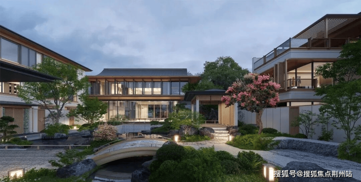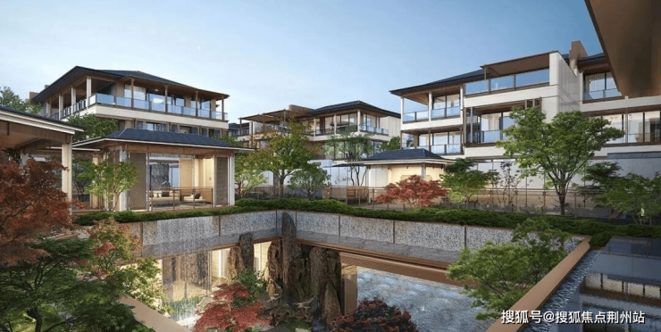 建筑采用新亚洲风格,通过对称布局、镂空雕花等细节,传递典雅气质;园林设计以“一轴五园”为脉络,融入水景与四季植被,营造步移景异的沉浸体验。约3.1米层高、全景落地窗等设计,让自然光影成为生活日常。