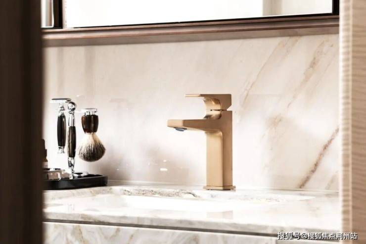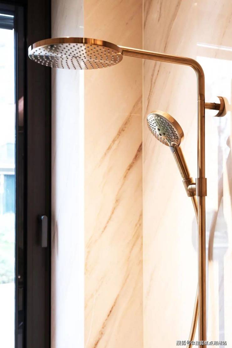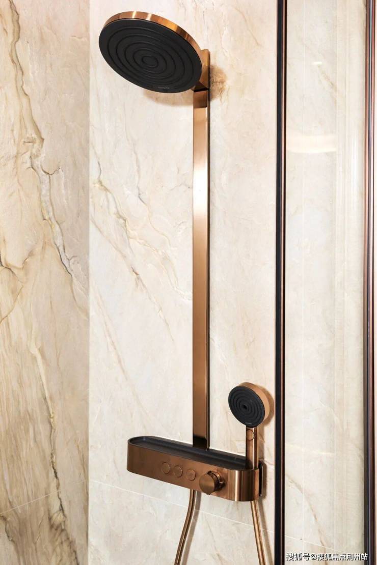 为进一步提升空间的奢华质感与专属体验,卫浴产品均采用汉斯格雅FinishPlus 特殊饰面博雅金,温润光泽与整体装修风格和谐相融,于细节处彰显项目对美学设计与精工品质的极致追求,也为业主带来更具品位的全卫浴生活体验。