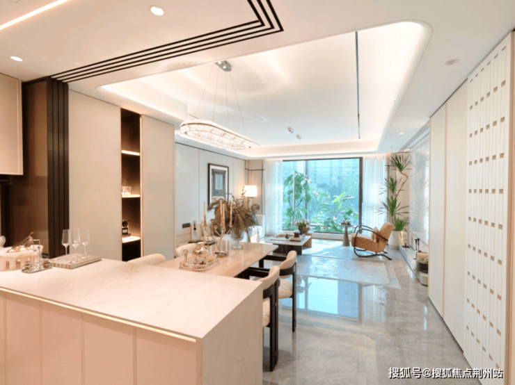 约5米超大宽厅设计,约9米纵深,餐客厨的空间大约在43㎡左右,空间感媲美市面上120㎡的户型。