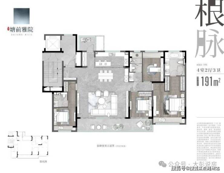 2、 大横厅平墅约191平,超大横厅有面!得房率约85%,独立入户玄关,10.4米超大阳台,7.2米宽景方厅,双套房设计,3面宽景观阳台+生活阳台,5开间朝南,家政间设计,终极改善之选!