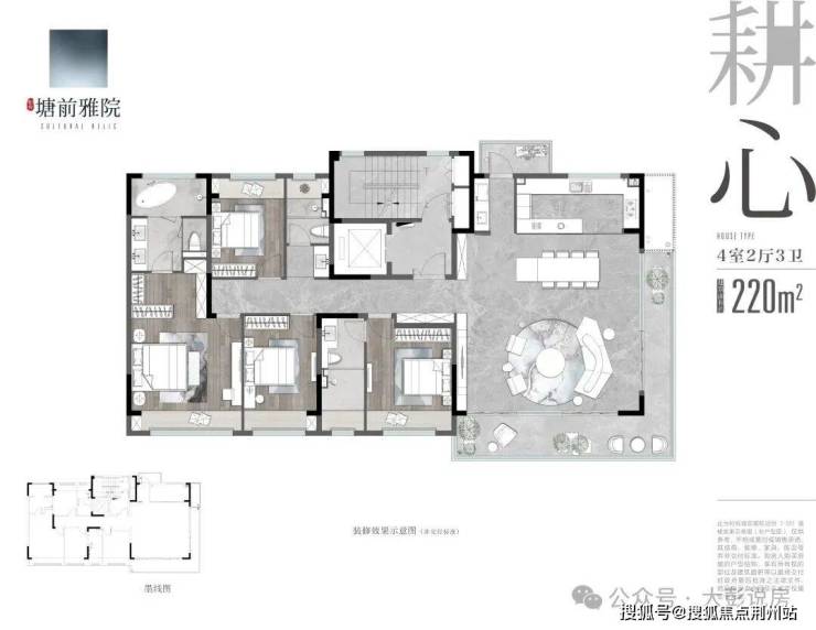 3、 稀缺奢华约220平米,L型转角大方厅,约50多平大客厅,奢华舒适,L型转角大阳台,通透明亮,21.8米朝南大开间,通风采光优,约220平米面积终极改善,传世大宅;