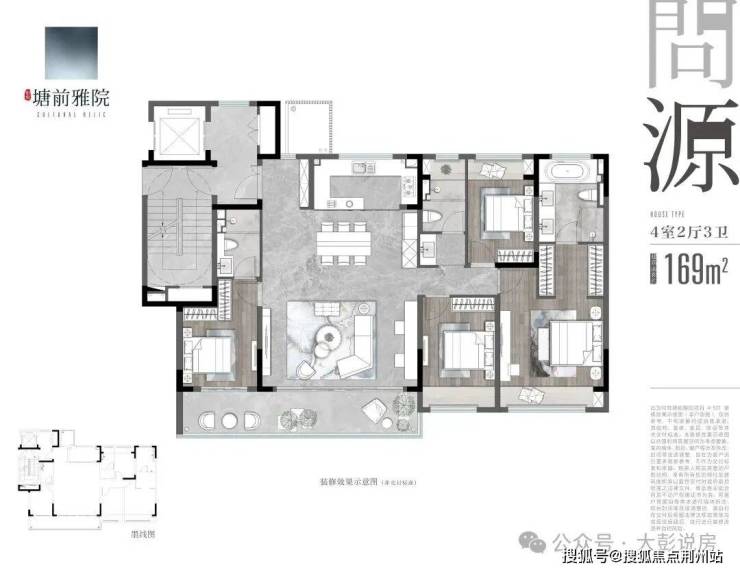 明星爆款169平,独立入户玄关,6.2米宽景方厅,四房三卫,双套房,9.3米超大阳台,5开间朝南,得房率约84%,大横厅,双套房,四房三卫,改善一步到位!
