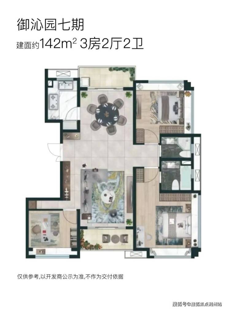 御沁园七期将推出3栋18F高层住宅,两梯两户无连廊设计;将推建面约132~172㎡三房户型,其中: