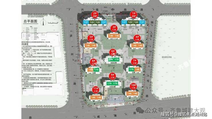 项目整盘均为四代宅设计,179㎡户型设置侧向、南向露台,其他户型为南向露台;外立面材质以涂料为主;高层层高3米,小高层为3.1米。