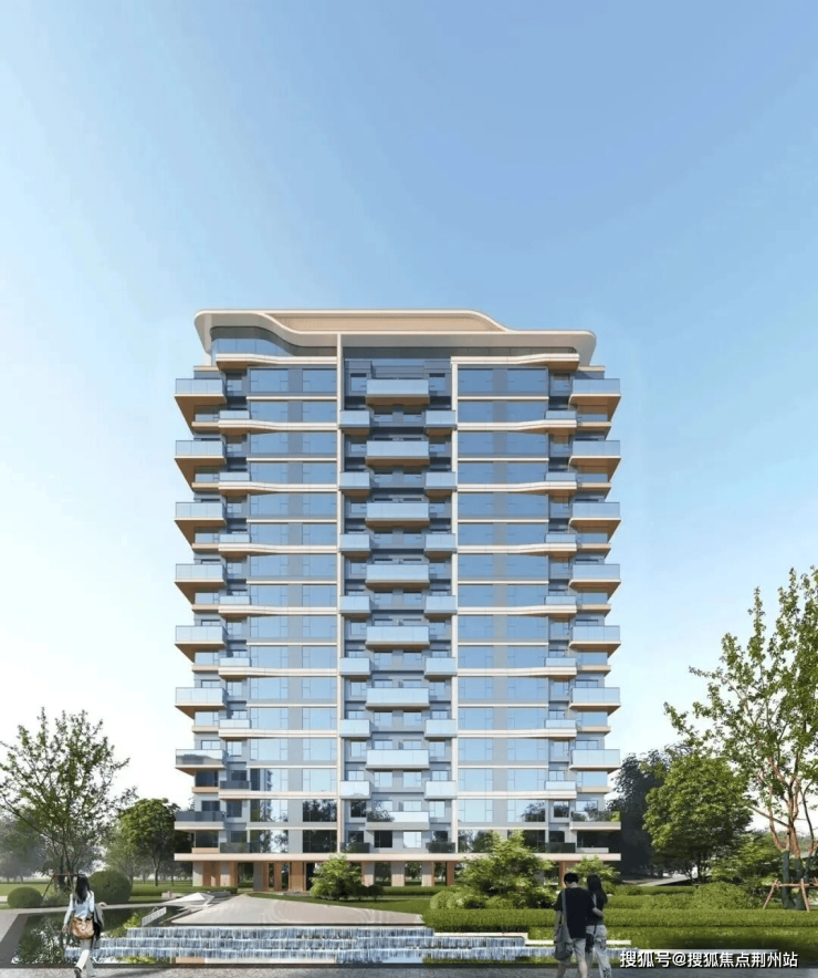 2、外立面融入了滨江流水元素,整体有现代极简美感,高颜值;