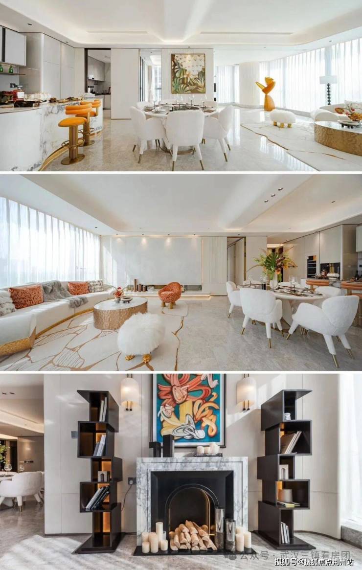 空间设计:注重公区边界互通共融,通过点聚面的手法打造指数级空间效果。室内设计融合东方人文内核与当代时尚,采用香奈儿经典米黑配色、菱形格纹、双C logo等元素,结合白玉兰大理石、水晶吊灯等材质,营造出优雅奢华的居住氛围。
