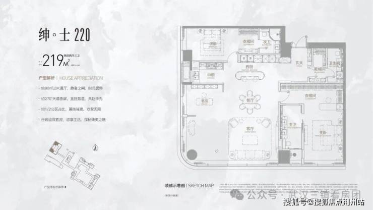 绅士220尊享户型,以约90mLDK通厅,静奢之间,时尚居停约270°天幕曲屏,直抵繁星,共赴华光约1/2公区占比,展映璀璨,欢聚无限。行政级双套房,恣享生活,探秘臻美之境