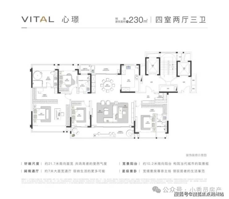 项目效果图更狠的是户型设计建面约170㎡起步 最大230㎡全系四房三卫 双套房起步主卧开间做到6.2米比普通楼盘客厅还宽敞这个叫拾月璟庭的盘活生生把科技城拽进"大平层时代"