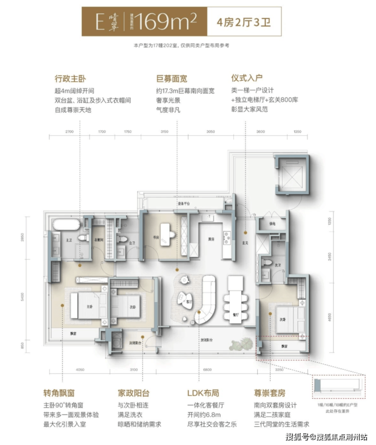 结合价格去看,建面139户型总价约500w,建面约169总价仅约600w。