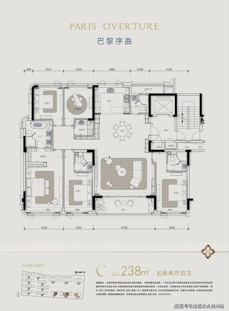 建面约218方为5房2厅3卫,建面约238方为5房2厅4卫!