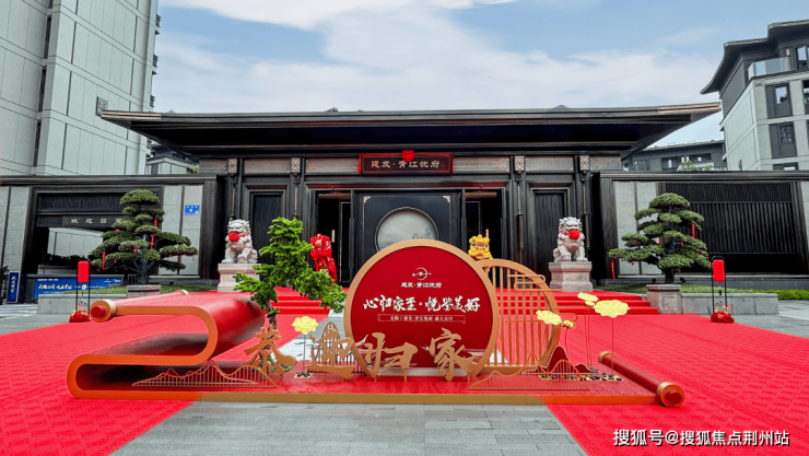 交付现场仪式感十足,从小区门口开始,一路红毯相迎,十分喜庆。大门口还特意安排了舞狮表演。