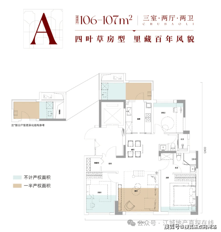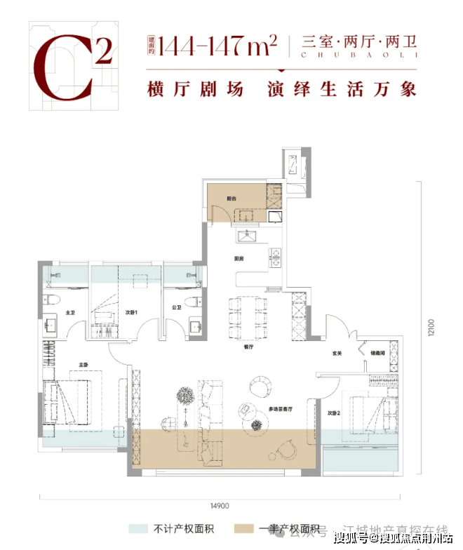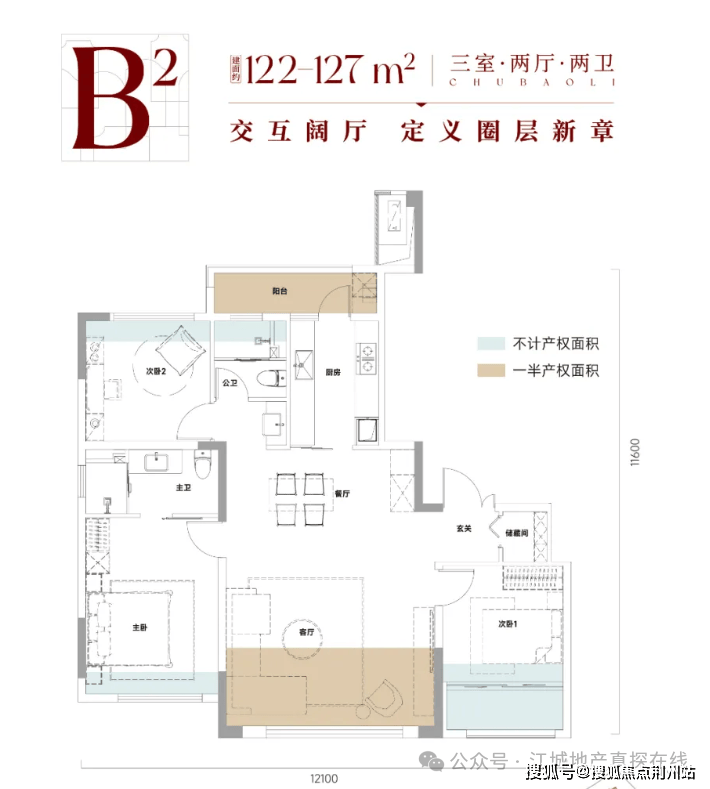 根据规划,项目一共分为两期开发,一期为住宅地块。其中住宅整体建面约12万㎡,容积率仅2.85,由12栋小高层、高层围合而成,总高9-26层,主推建面约106-165㎡三至四房,全系2T2户,综合实用率超90%。