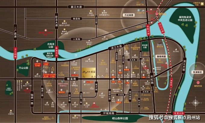 山水檀溪 · 桂园项目位于襄城区檀溪路。南临山水家 园小区,北临公务员小区(龙堤滨江园),东临育才路,与襄阳市三十三中相邻,西临汤家湾路,与山水天成小区相邻。