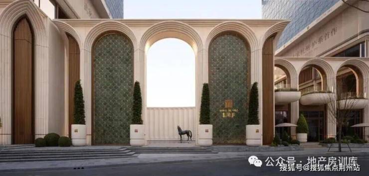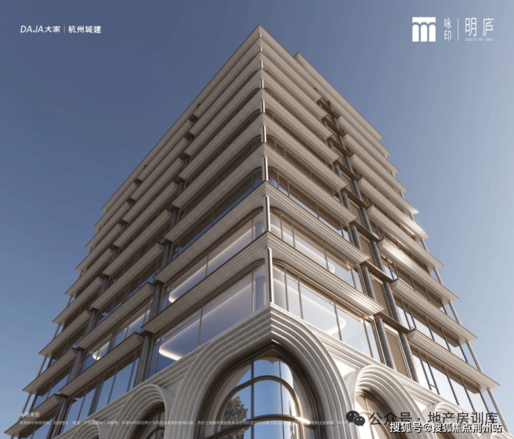 约11.5米高石材基座,融入西方古典拱券元素,通过叠级手法增强空间层次感,奠定庄重基调。中部以仿石铝板与玻璃幕墙交织,形成9层叠级结构,顶部穹顶轻盈升腾,整体呈现“刚柔并济”的视觉效果。