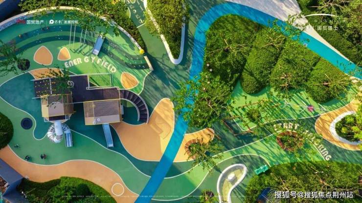空中鸟瞰配色太和谐了,与周边丛生元宝枫、香樟林等完美融合;其次游乐设施丰富,小朋友爱玩的攀爬网、树屋滑梯、溪涧水景与雾喷装置等无动力设施统统配齐,适配各年龄阶段的游戏场景。