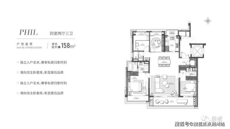 建面约158㎡洋房,整个户型空间感拉满,类一梯一户设计,自带独立阔绰候厅。