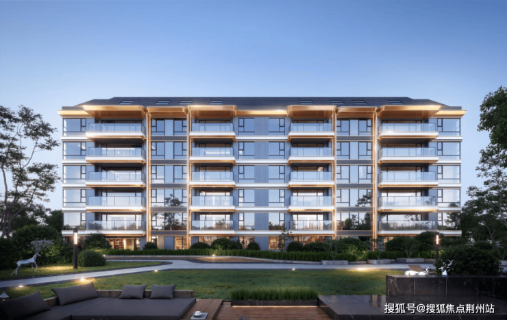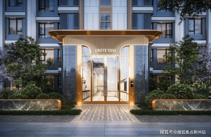 由大面玻璃幕墙、金属铝板、金色檐口、圆润倒角组成的现代美学光影立面也成了重重绿意中的风景和点缀,尽显高级大气。首层入户大堂同样重工,双层挑高、中轴对称,整体还原传统中式王府高门的规制与气场。