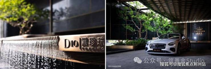 社区主入口横向展开面长达百米、高6米,参考酒店式入户设计,布置环岛落客区奢侈空间尺度。范思哲黑与安哥拉黑石材低调华贵,顶面千片鳞片造型似江浪灵动,百达翡翠原石与黄铜镶嵌而成“王冠之瞳”,整体空间奢华与优雅并存。