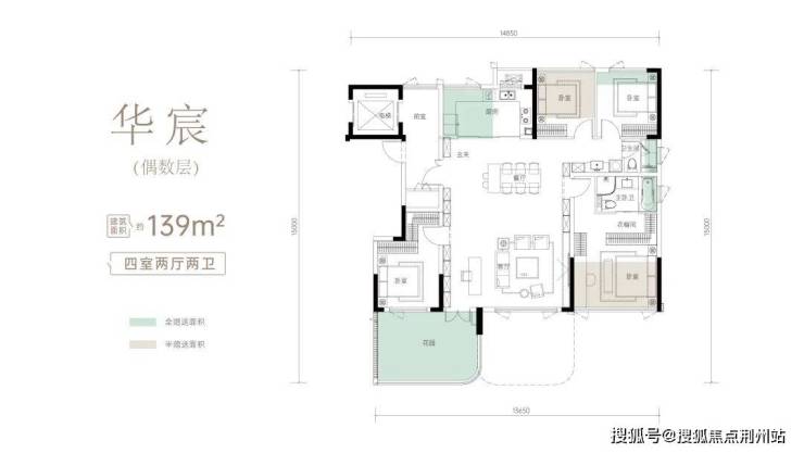 ②11号楼(10F),共18户,1梯2户,均为139㎡的四房两卫,得房率约113%。