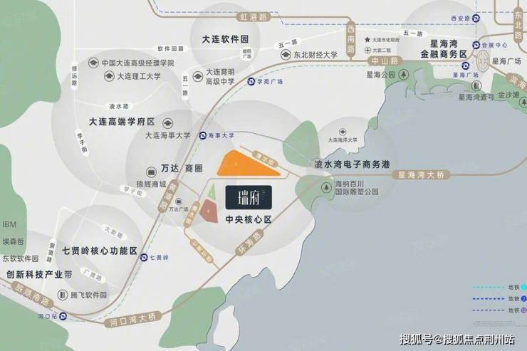 大连瑞府项目位于高新区黄浦路南侧,北邻海事大学水上训练中心,东侧清水街与跨海大桥相连,南侧为国家电网培训中心,西侧为万达广场。