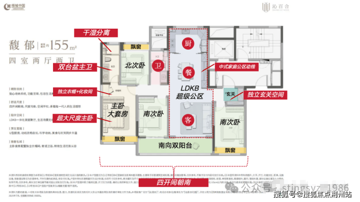 4.建面约154-233㎡全系四房设计,强调“空间平权”,次卧开间≥3米,客厅≥4.5米,保证每个房间的居住舒适度。LDK一体化设计,四室(双套房)设计,让每一位家庭成员都有独立与欢聚的舞台。