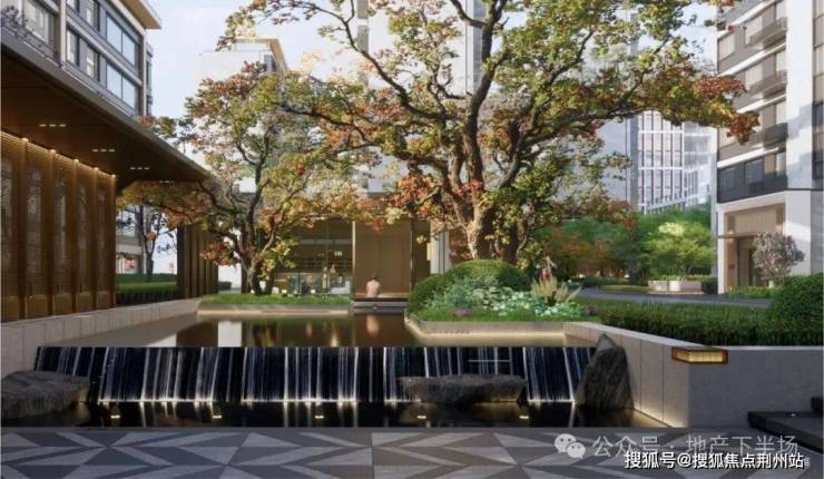 其中,“三轴”的商业展示轴是家门口的繁华场域;沿街展示轴用社区大门与4米高围墙,围合出私属领域的品质格调。归家礼仪轴利用场地高差打造叠水景观,潺潺水声洗去俗世喧嚣,重归宁静。