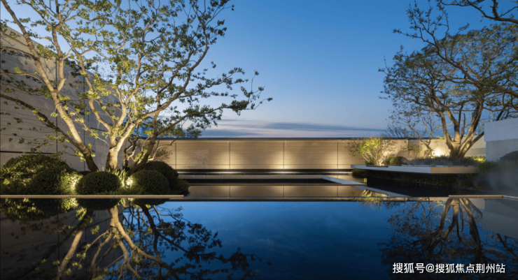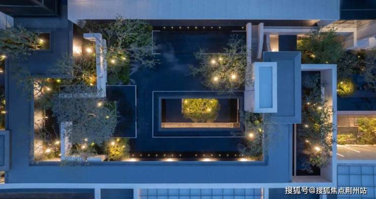 七株精挑细选的红果冬青,生长在层叠的悬浮水院之上。水底的幻彩蓝奢石倒映着天光云影,将杭州的立体山水浓缩进整片园林之中。