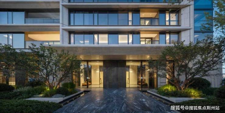 沉香米黄石材+铝板斜切工艺+三玻两腔LOW-E玻璃幕墙,勾勒出干净利落、繁简有序的层次感。