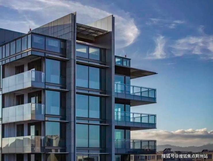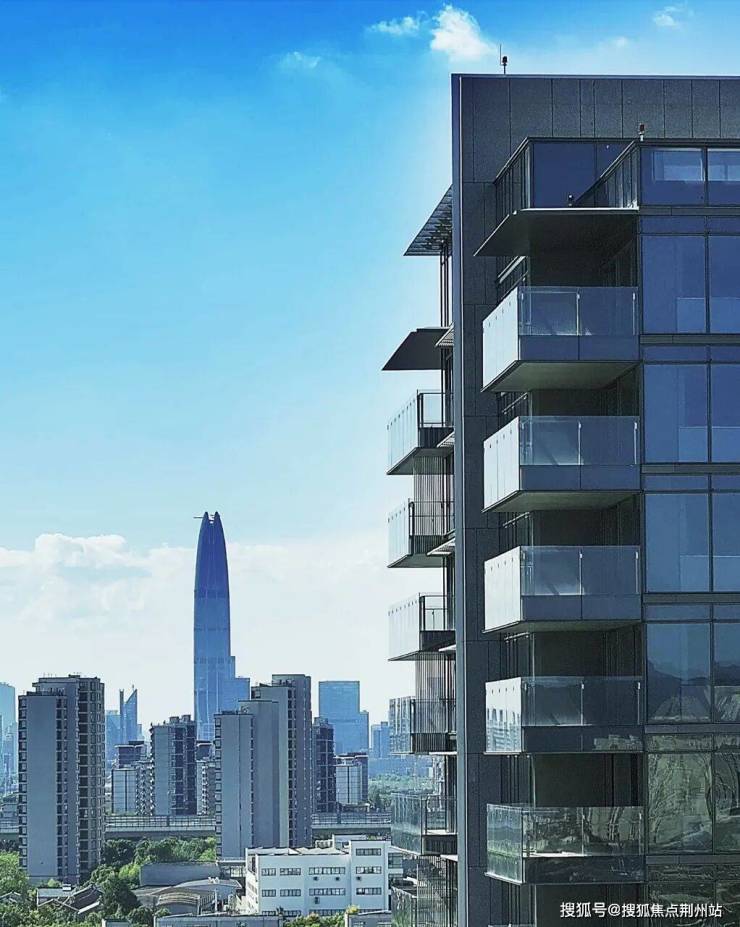 建筑设计由line+建筑事务所联合创始人孟凡浩执笔,进口石材干挂、三层中空Low-e超白玻搭配凤铝科技阿克苏氟碳粉三涂工艺铝板的外立面,晴天里像被阳光吻过的蓝宝石,纤长轮廓在蓝天下格外明快,让人不由得想起纽约ONE57。