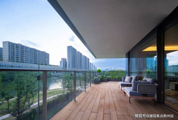 阳台设计上暗藏巧思,约3米进深的错落阳台,像从室内延伸出的“观景台”,把窗外的河景与社区景致拉成巨幕画幅。