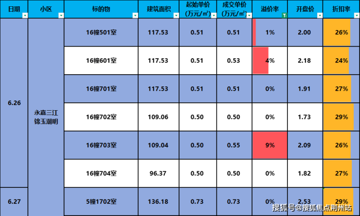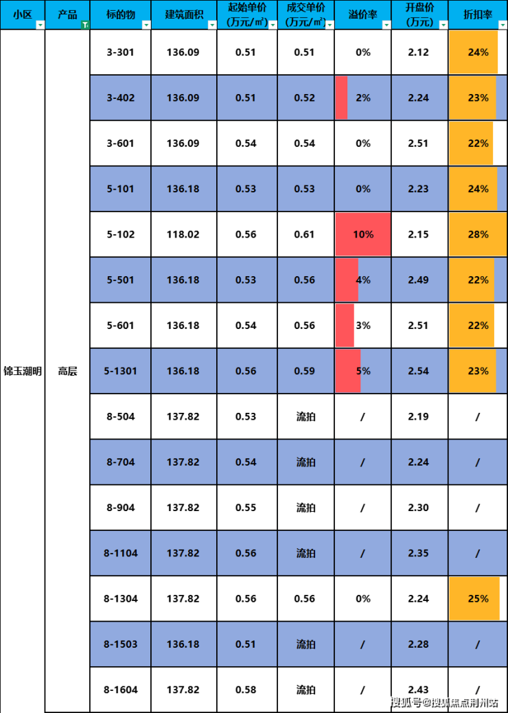 这15套高层房源的起拍价约0.5-0.6万元/㎡左右,最终流拍了6套,成交了9套,3、5幢房源全部成交,8幢房源仅成交了一套。