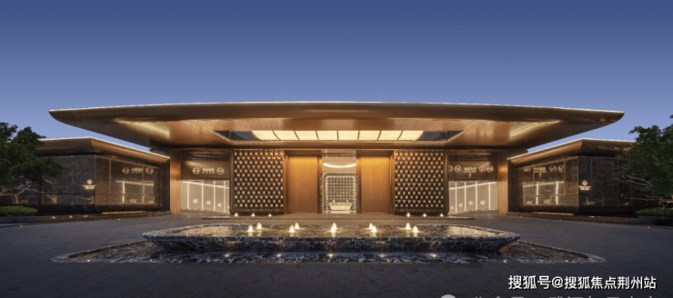 华发外滩玺项目呈现的是鎏金级归家仪式:60米宽超级大门取意安达仕酒店对称仪式感,气势恢弘。