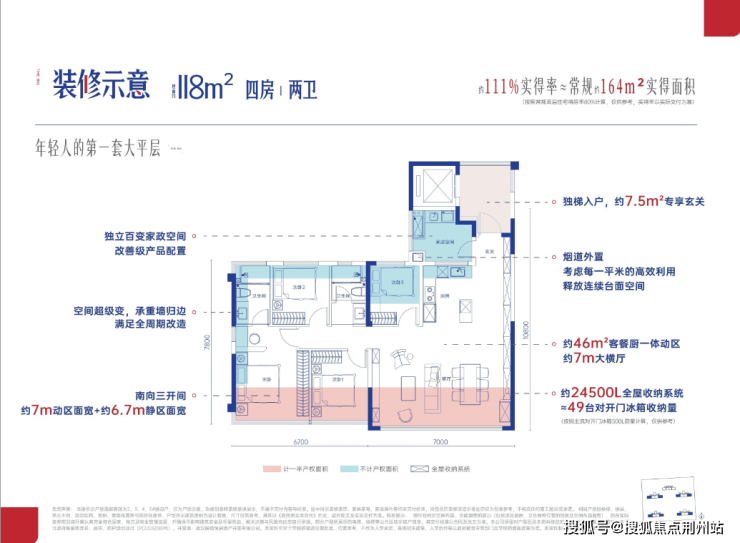 户型亮点:得房率最高约122%,小面积实现大功能