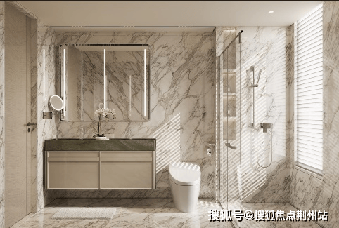 2.精选白金沙、超白洞石、亚马逊绿、威尼斯棕等高端石材,应用于所有卫生间台面、餐边柜、大户型地面及电视背景墙,完美适配不同户型风格;