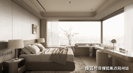 3.主卧270°转角飘窗,最大玻璃面约6㎡,转角无柱、无遮挡双面观景视野,超长飘窗台面实现主卧小家化场景,配置独立衣帽间;