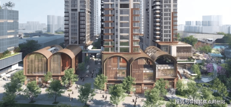 比如,沿着整个项目的十字中轴线,布局了非标商业街区和市集。与传统的社区商业不同,该项目商业类似于住宅的底盘,不仅抬高了住宅的视野和采光,还能真正实现配套就在正楼下的生活方式。