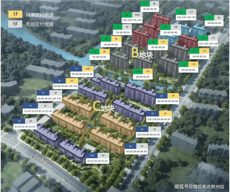 小区总共885套房源,规划有6栋11层建筑、9栋9层建筑,以及9栋6层建筑,主力户型建面约89㎡、109㎡,全社区人车分流设计,车位比1:1.09,物业暂定宝龙物业,绿化率高达40%。