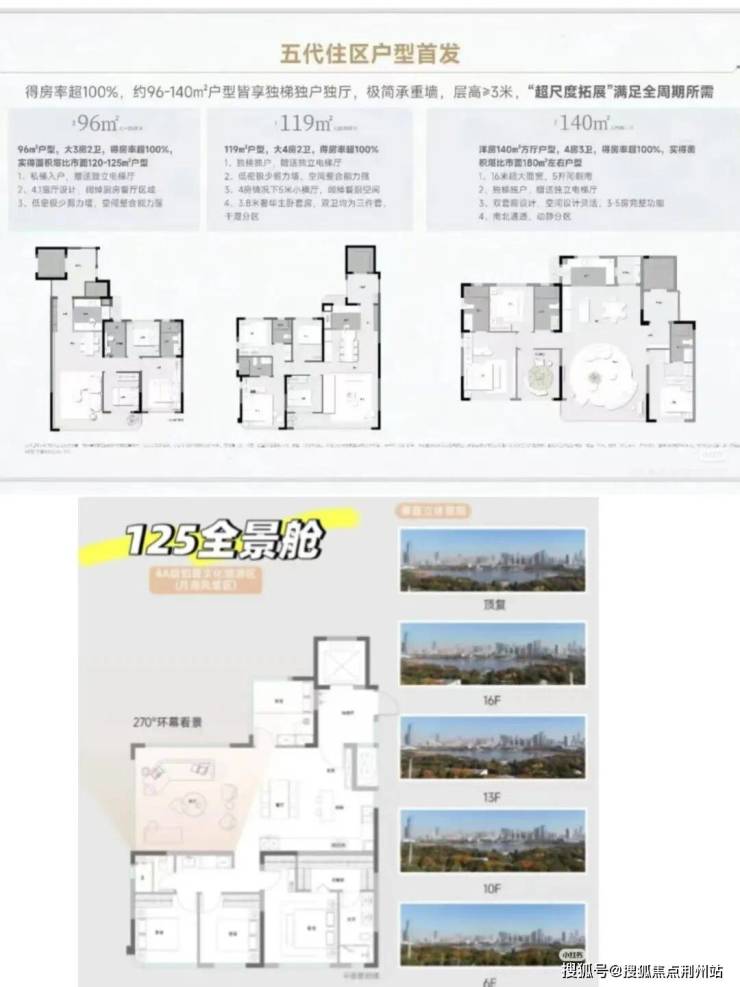 目前金地知音乐府户型图已有更新!户型:一共4个面积96平的3房2厅2卫,119平的4房2厅2卫,140平的大方厅,125平的全景舱户型!相对于金地大成乐府多了一个125平的看湖全景舱!