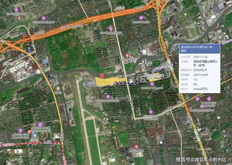 地块东侧800余米处,去年11月24日,金茂以底价372640万元竞得宝山区N120702单元B2-08地块,楼面价37000元/㎡。项目案名金茂・满誉,是金茂 “金玉满堂” 产品系中上海首个 “满系” 作品。规划拟建8幢16-17F高层住宅,2幢6F洋房,以及13幢4F叠墅。